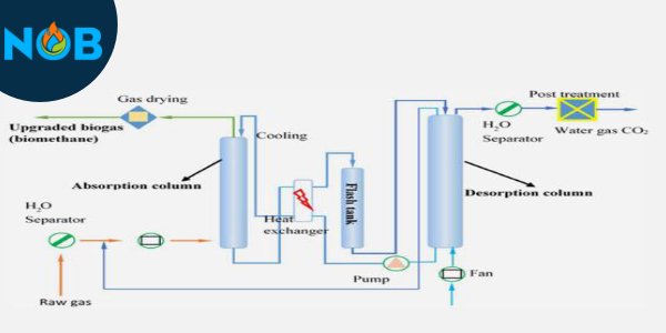 Water scrubbing is used to remove carbon dioxide but also hydrogen sulphide from biogas since these gases is more soluble in water than methane. The absorption process is purely physical. Usually, the biogas is pressurized and fed to the bottom of a packed column where water is fed on the top and so the absorption process is operated counter-currently.